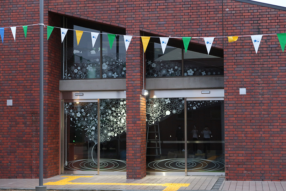 交流拠点「みつぼの花」のサインを施工しています。 投稿者:Toyonaka_Art_Project2020年9月26日2021年10月30日カテゴリー:まちづくり、建築、施設案内タグ:まちづくり、建築、武庫川女子大学 交流拠点「みつぼの花」の命名をした武庫川女子大学生活環境学科の学生が、メインエントランスのガラス面もデザインしました。「みつぼの花」のイメージを、全面ガラスにあしらっています。 学生にとって、カッティングシート貼りは初めての体験でしたが、施工の事前勉強と丁寧な施工により、1日かけて完成させました。 皆さんを迎え入れるエントランスを華やかに演出しています。 Tweetいいね 読み込み中… 関連