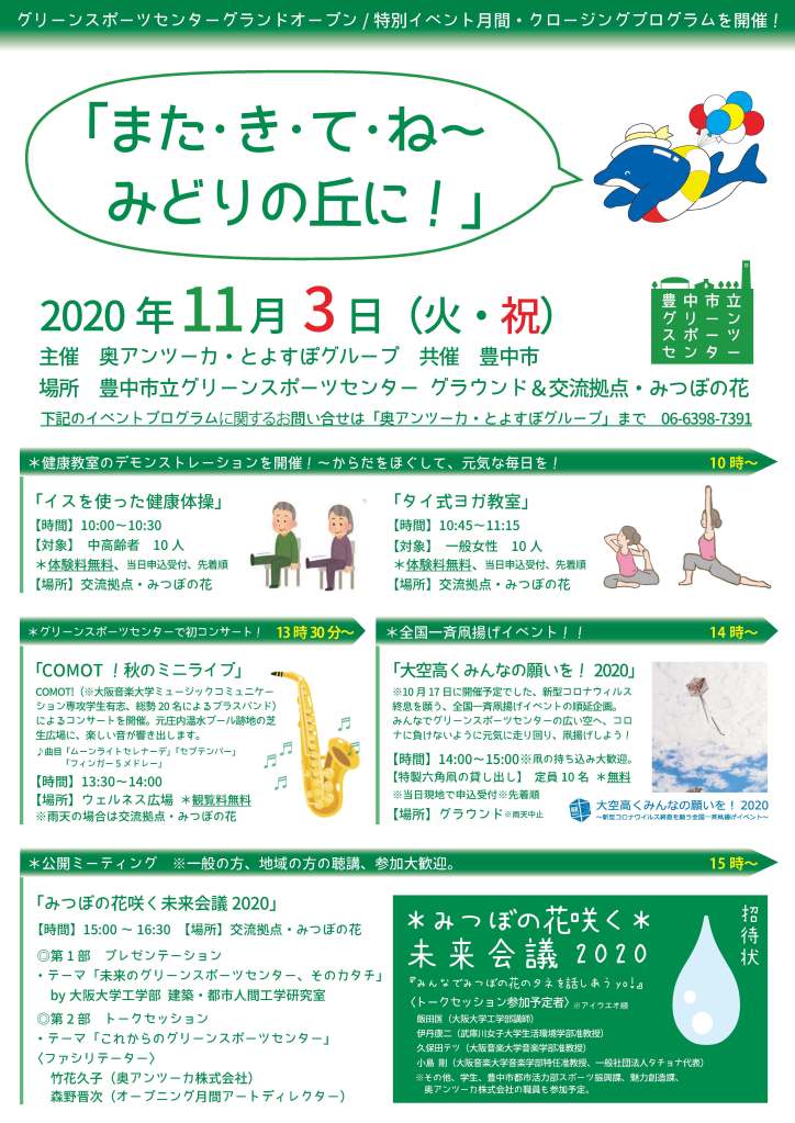 10月1日から開催してきました、オープニング月間も残すところ4日となりました。その最終日11月3日(火曜・祝)は、様々なクロージングプログラムを開催します!