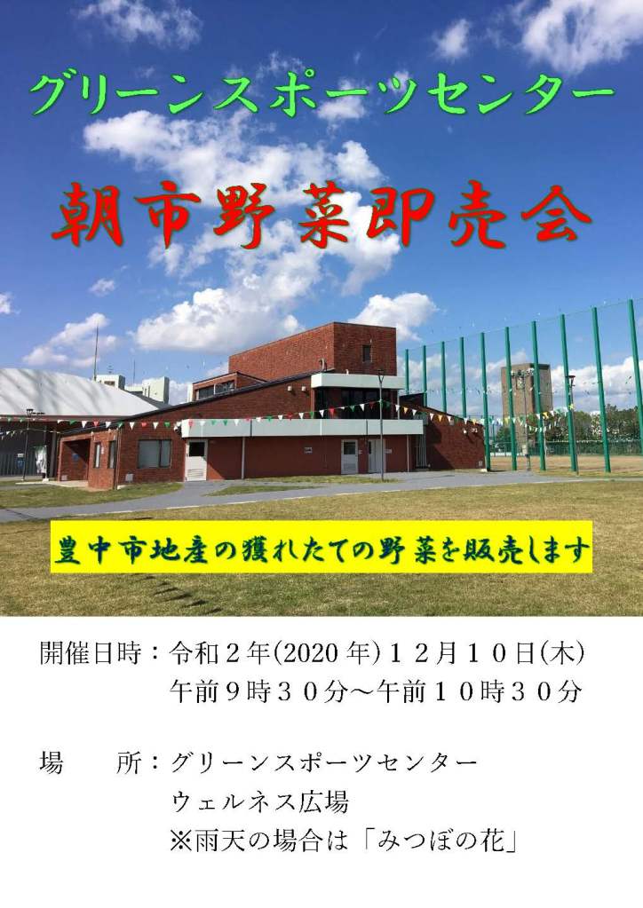 12/10は、朝市野菜即売会! 投稿者:Toyonaka_Art_Project2020年12月9日2021年9月2日カテゴリー:未分類 12/10に、朝市野菜即売会を行います。 新鮮で安心な野菜を探しに、グリーンスポーツセンターにお越しください。 Tweetいいね 読み込み中… 関連