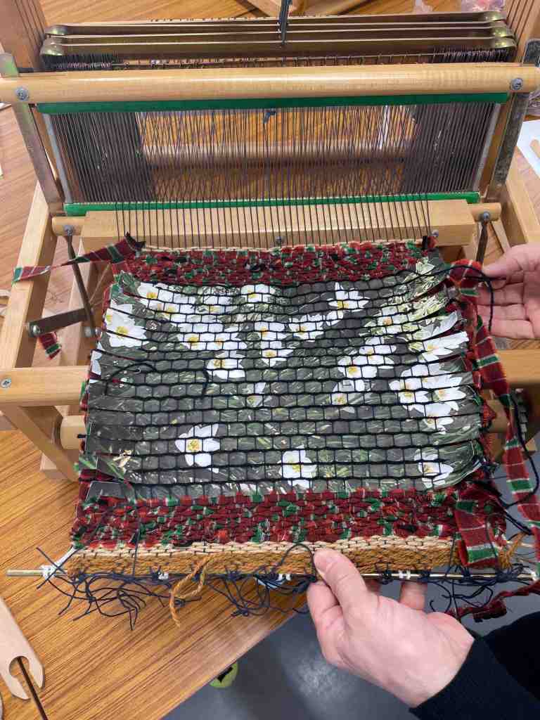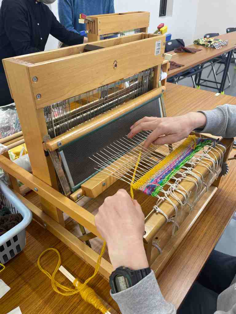 本格的な小型の織り機で、「マイ クラフト、マイ ワークス」をテーマに、作品づくりにチャレンジしていきます。(下記の写真は第一回目の様子です。)