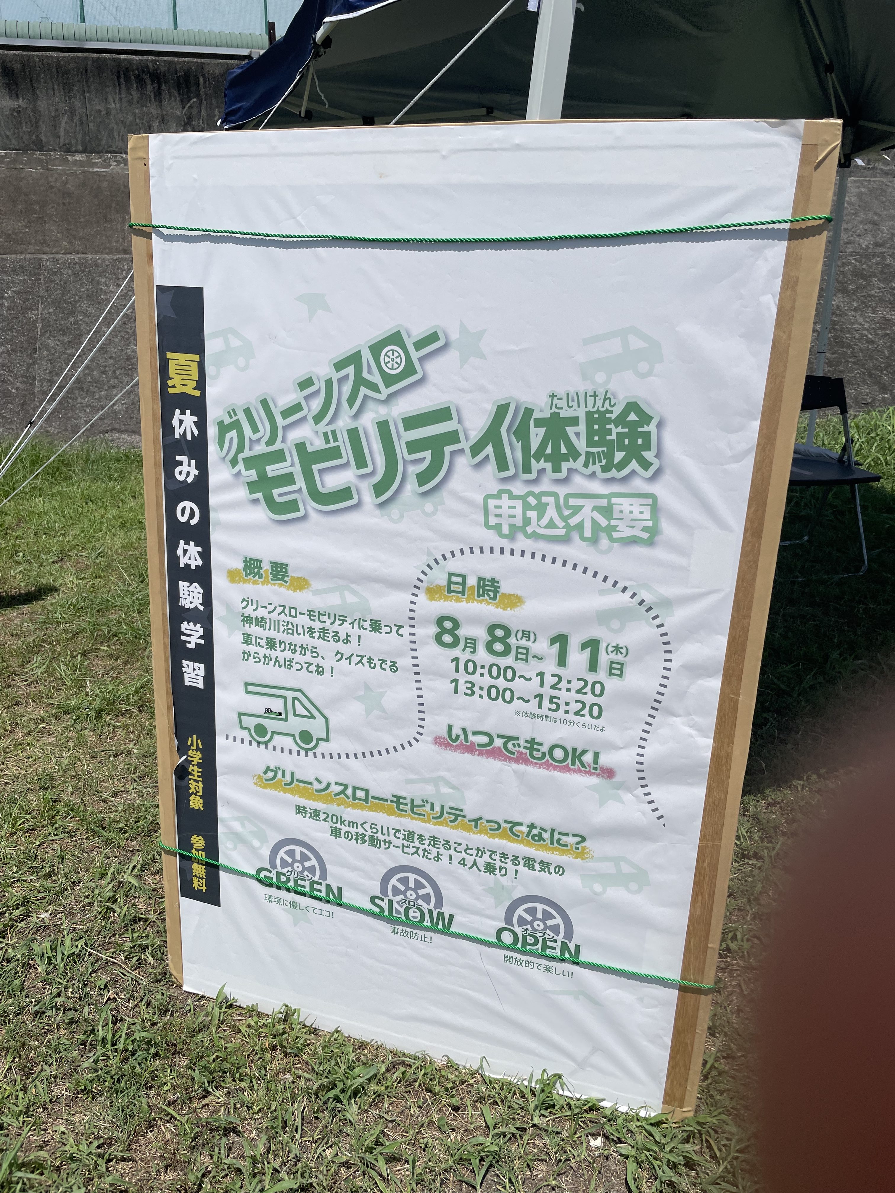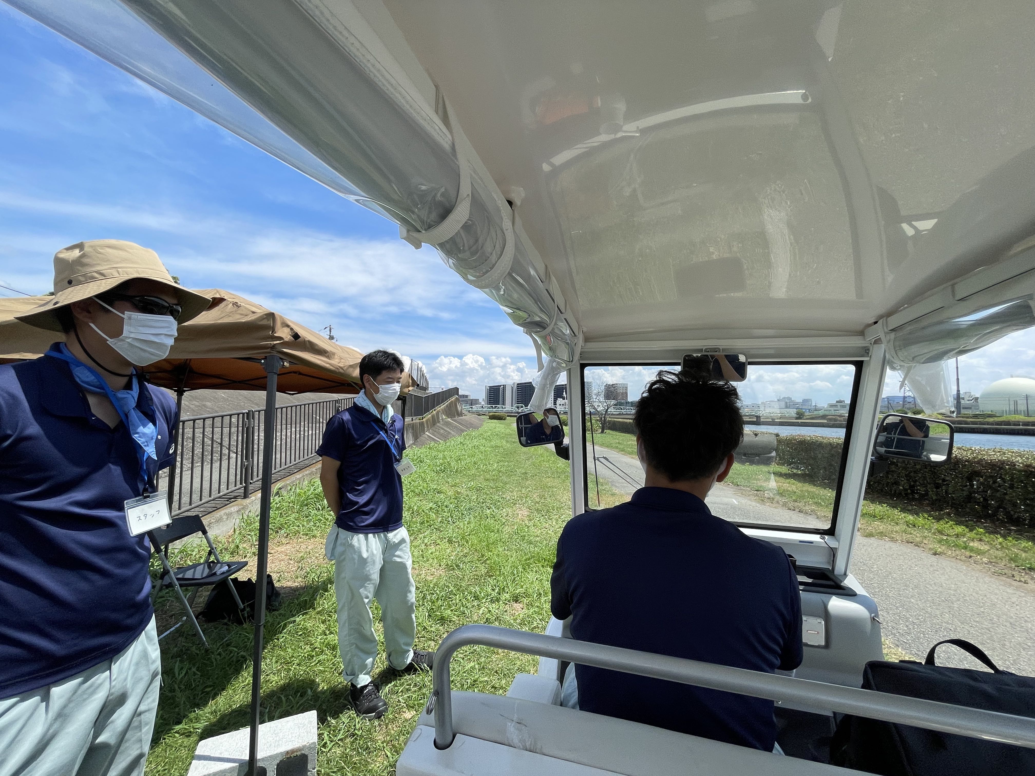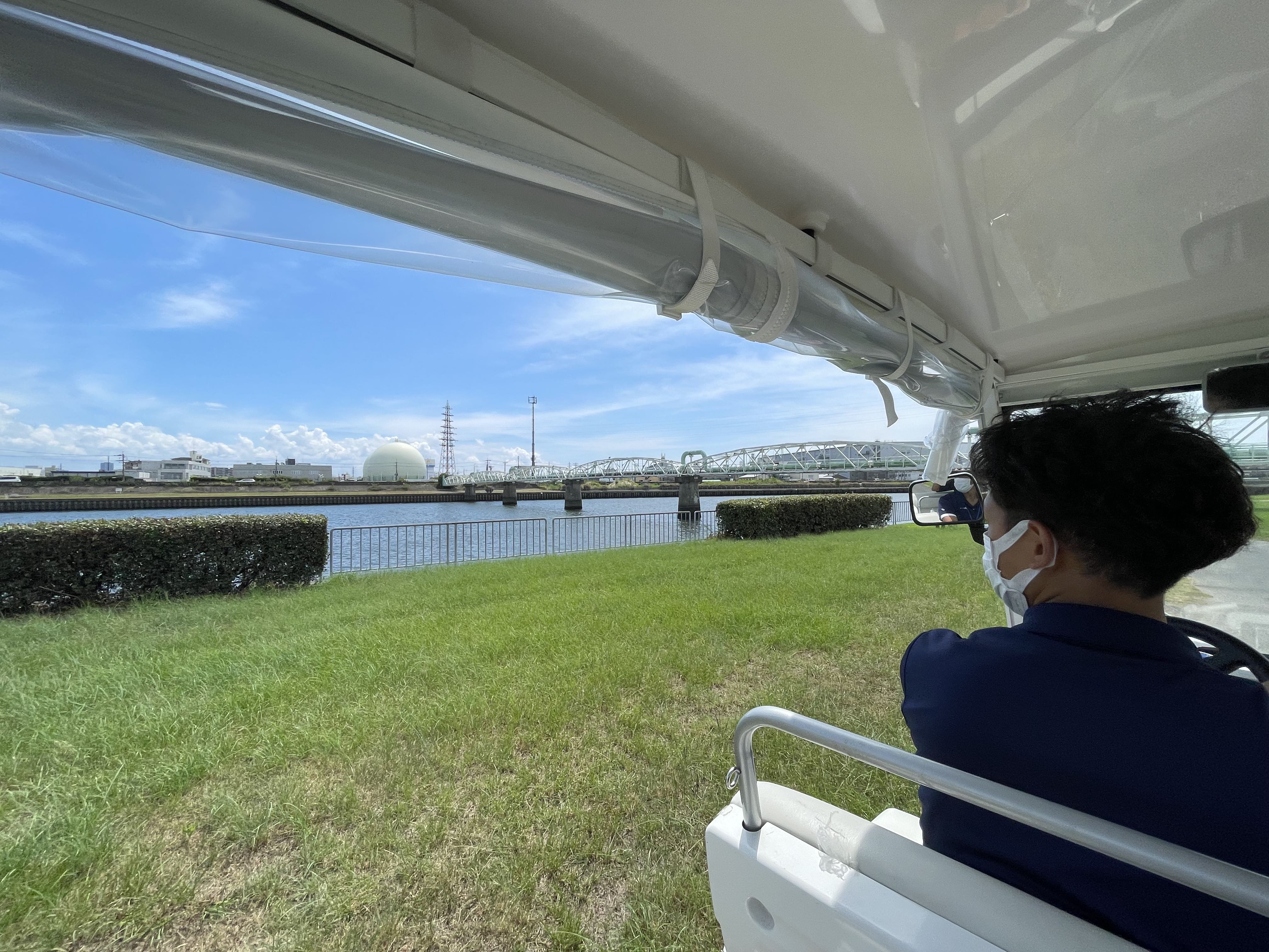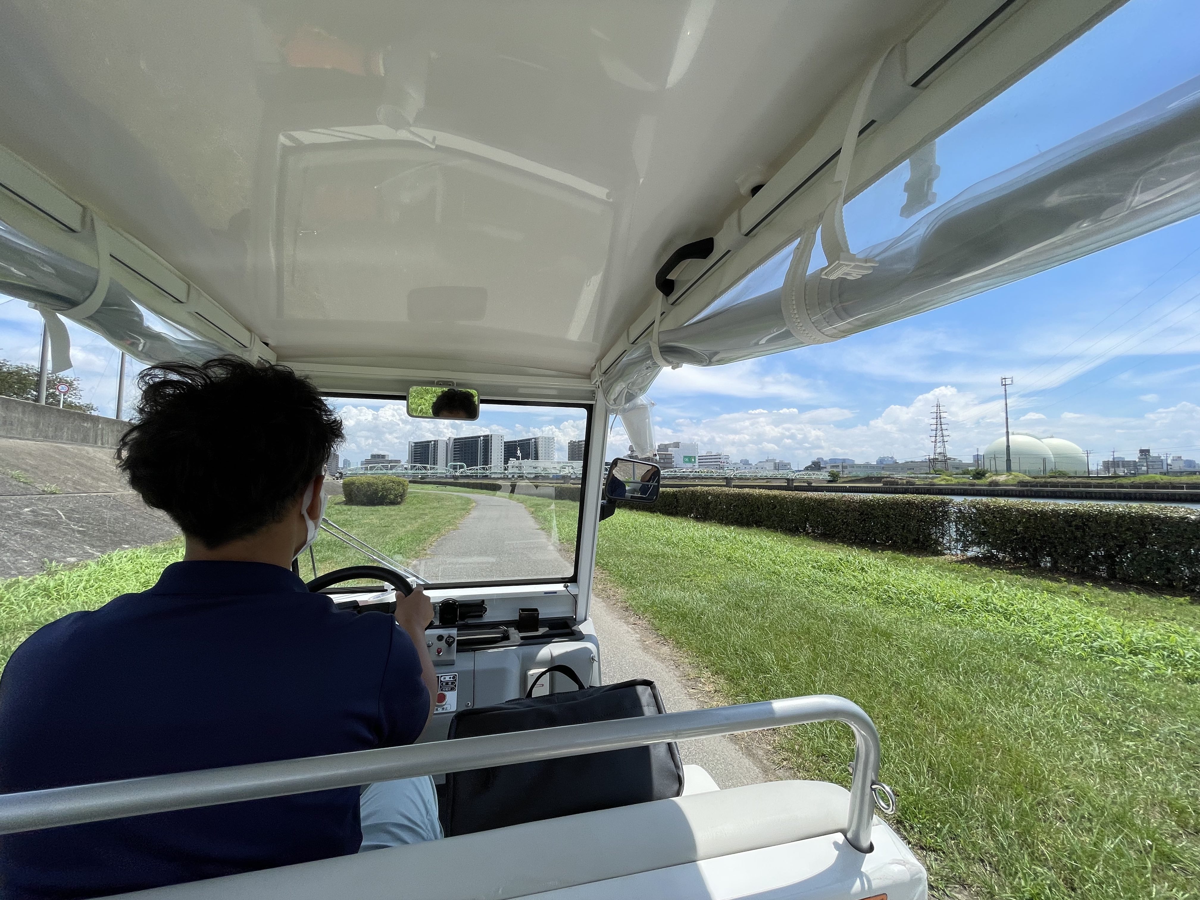 神崎川でグリーンスローモビリティーの体験会が行われています。 8月8日(月)〜11日(木)の4日間、低速な乗り物で、“ちょっとその先へ”の移動利便性UPと、カート感覚の開放的なモビリティーの実証実験です。 そのゆったりとした乗り心地は、周りの風景をいつもより感じる事ができます。 猛暑日の炎天下の中ですが、水辺を、いつもとは違う速度で、いつもとは違う散策を楽しめます。 ドア to ドアの車移動から、スローモビリティーによる“身近な世界の拡張”へ。 是非一度ご体験ください。 (対象〜小学生※同伴者の同乗は3名までOK) ※このイベントは防災AR体験と同時開催です。 →チラシ
