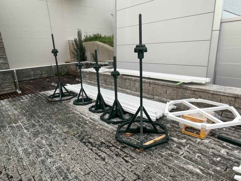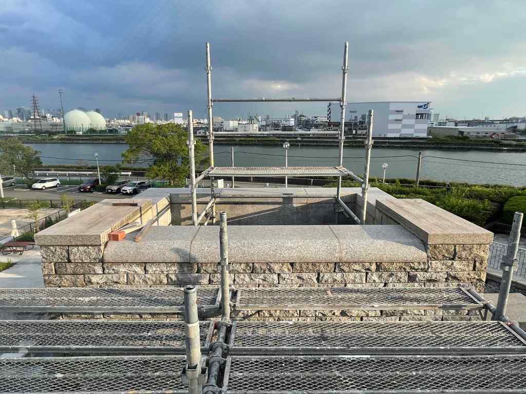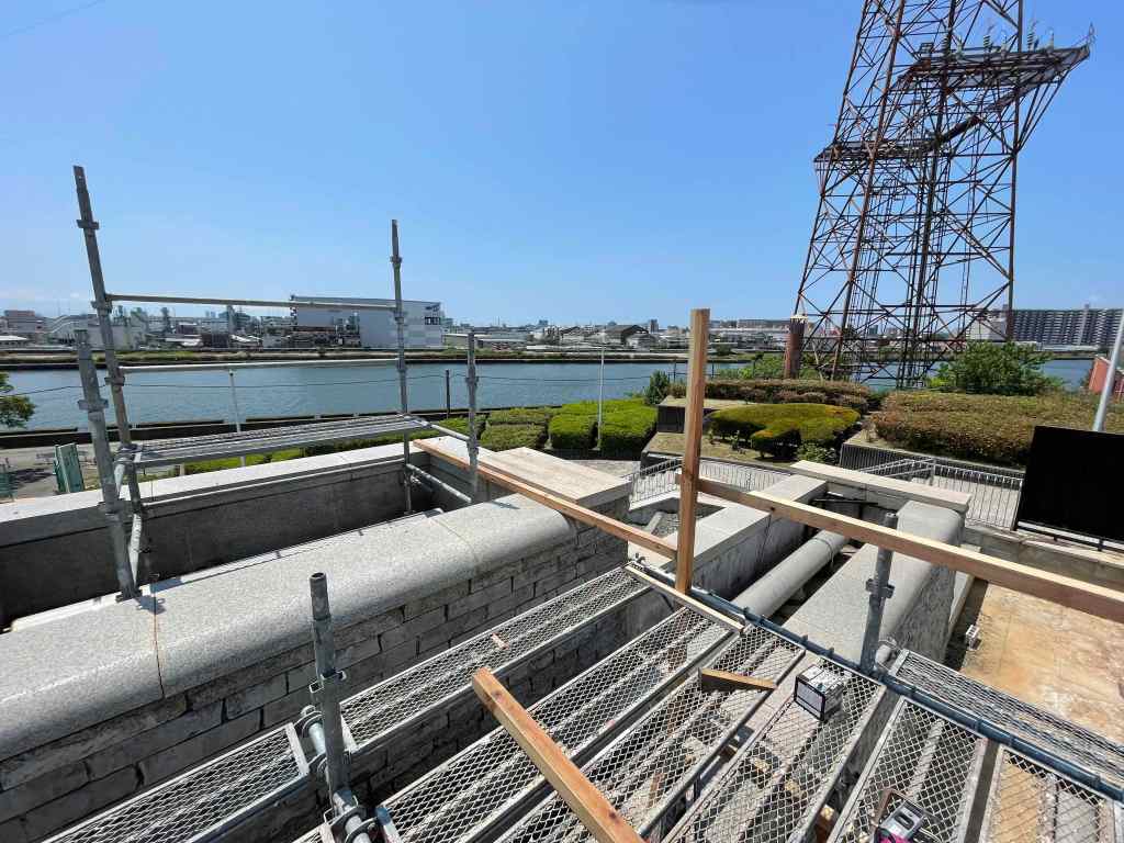 8月に入っても厳しい暑さはより厳しく、築城日和は暑さとの闘いになっています (-.-;) 7月下旬に足場が設置され、城の尖塔部のパーツもおおかた完成し、組み上げ作業の準備が整いつつあります。一番大きな中央の塔は高さが5メートルになるので、安全確保の意味でも足場は欠かせません。 その他、7つの尖塔の後ろ建屋部分の材の加工も現地で同時に進行し、イメージと図面と現場サイズ感を何度も何度も確認しながら、たち現していきます。(グリスポキャッスルには、秘密の“開かずの扉”や、煙突なども有るのです。) ただ、工程としては現時点では遅れ気味です、、が、秋には開城イベントも控えていますので、安全第一で、着々と作業を進めていきます。 今月のグリスポは、マンスリーイベント「水鉄砲で遊ぼう」が開催、また、芝生広場近くではミストシャワーも登場しています。 風はいつも変わらず、心地よく吹き抜けていきますので、午前中、もしくは陽が少し落ちてきた夕刻が、この時期のグリスポおすすめタイムです。 その他、8月はスケートボード教室、淀川花火大会、音楽フェスなど、リニューアル後の場の利活用としては新たなフェーズへ。 是非、一度足を運んでみてください! 次回の投稿では、築城プロジェクトの山場、石段上部への塔の組み上げ設置がおそらく報告できると思います! 〜アートプロジェクト気流部 森野 晋次 ▶︎築城日和〜❶