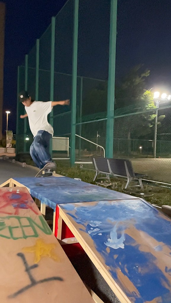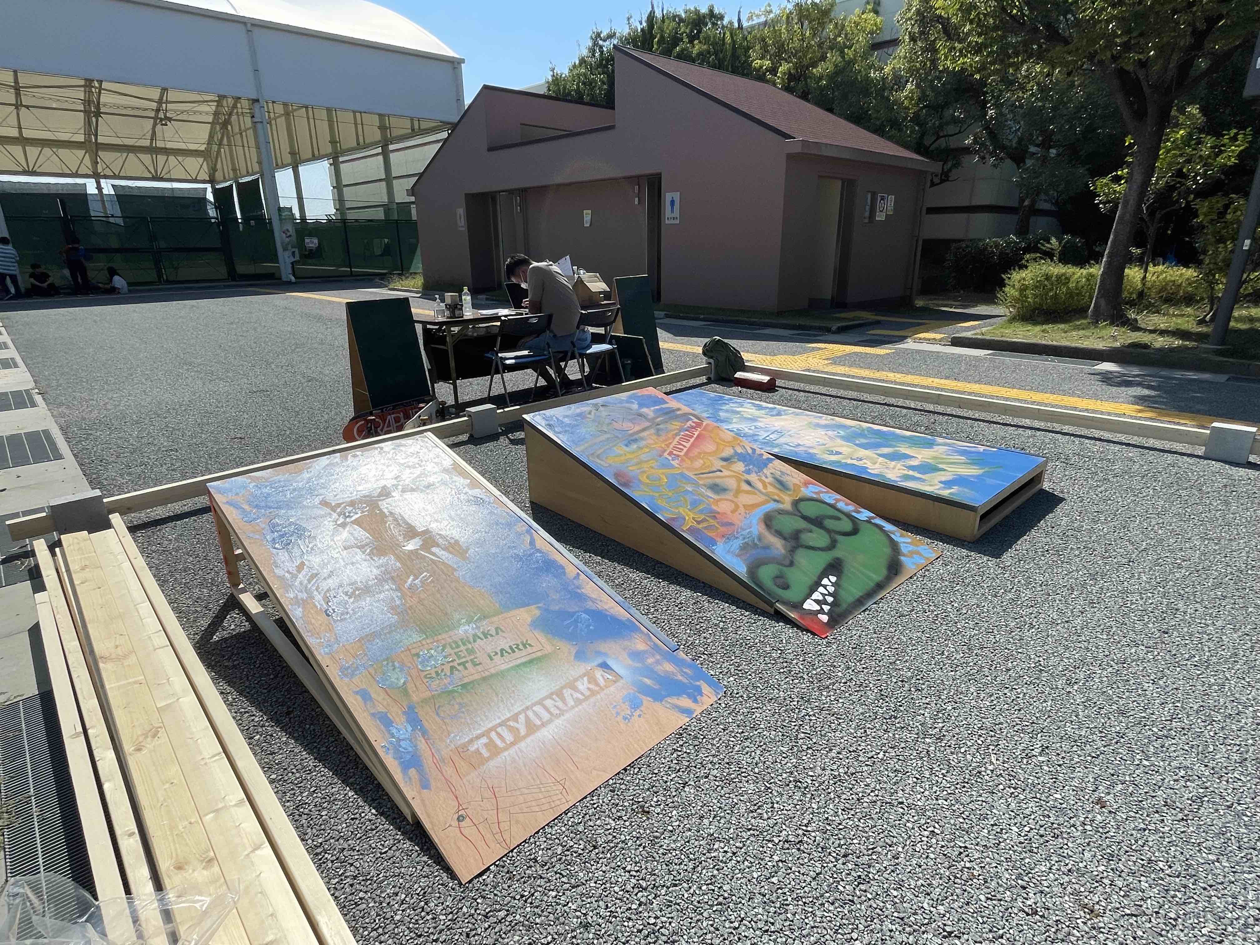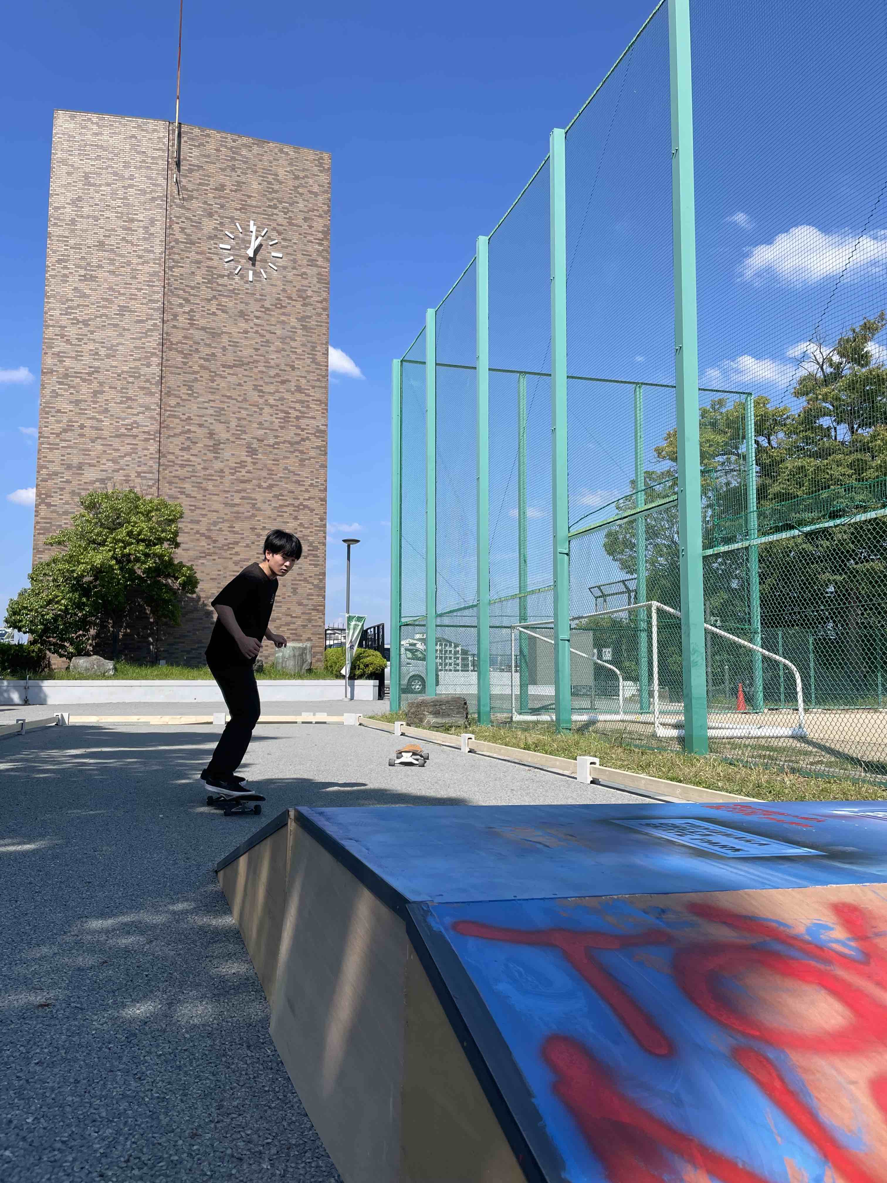 「TOYONAKA GREEN SKATE PARK」を主宰する、西鷹さん(豊中市在住のスケーター)にスケートボードの話をうかがうことが出来ましたので紹介させて頂きます(^^) スケートボードの遊び方は大きく分けると「ストリート」と「パーク」があり、その名の通り「ストリート」は、街そのものが遊び場になり、スケートボードがカルチャーとして、音楽、ファッション、アートと溶け合う精神的な“ルーツ”になっています。「パーク」というのは、スケボー用の専用施設のことを指し、各々が技を磨き、大会などが行われます。東京オリンピック2020でも注目されたスケボー競技も「パーク」で開催されています。日本人のメダリストが生まれたオリンピック以降は注目スポーツになり、「ストリート」の遊び方が社会的な問題になる事も増えていますが、「パーク」の整備を進める契機にもなり、グリーンスポーツセンターのプログラムは、今年度で二回目のスケートパーク整備に向けた実証実験となります。※昨年度一回目は豊南市場。 西鷹さんご自身も、「ストリート」と「パーク」の二つの可能性と、それにまつわる課題を抱えながらも、日々スケボーの魅力を発信し、一人でも多くの方に共有されていくことを目指されています。 そして、その風を切るその滑りはとにかくカッコいい!!