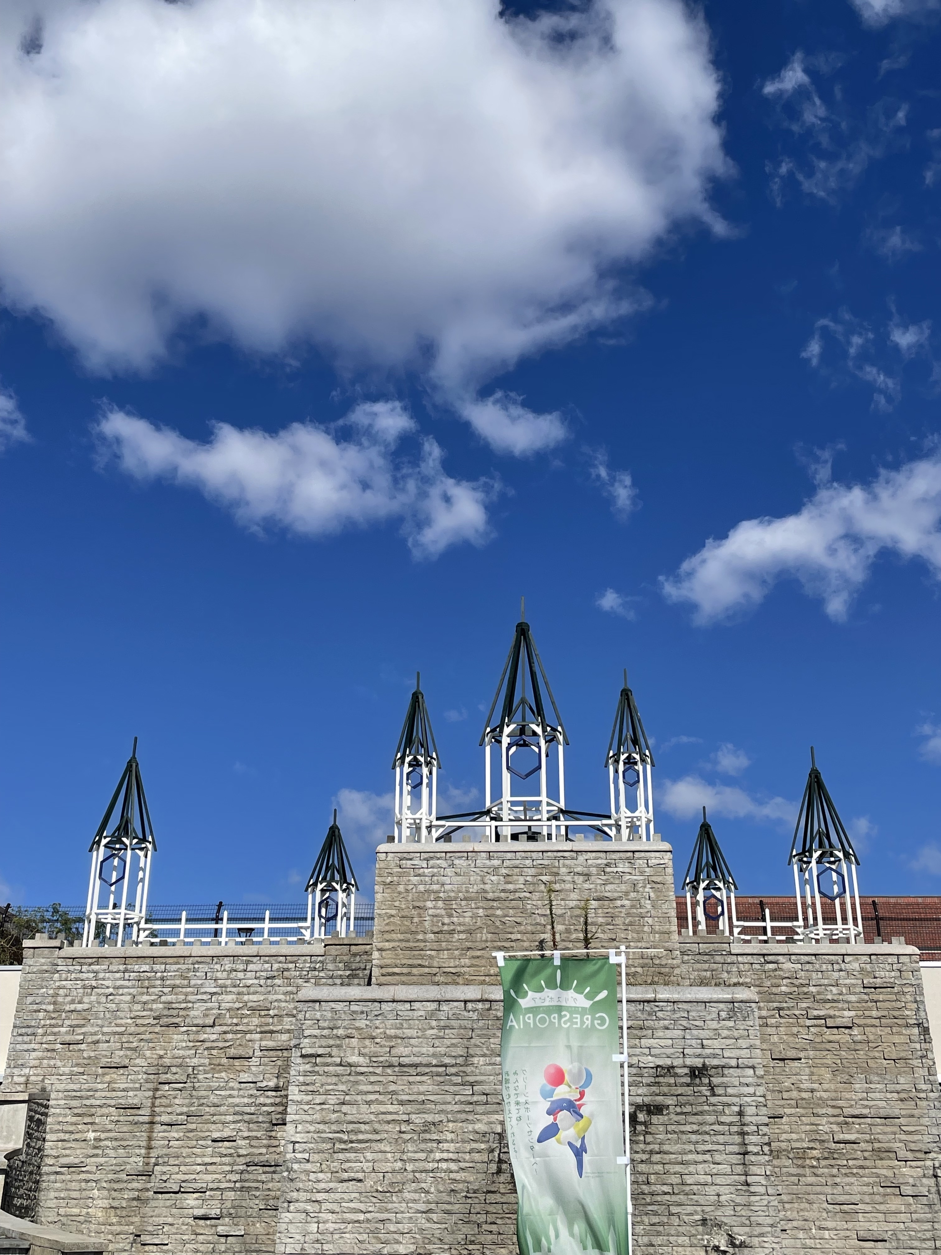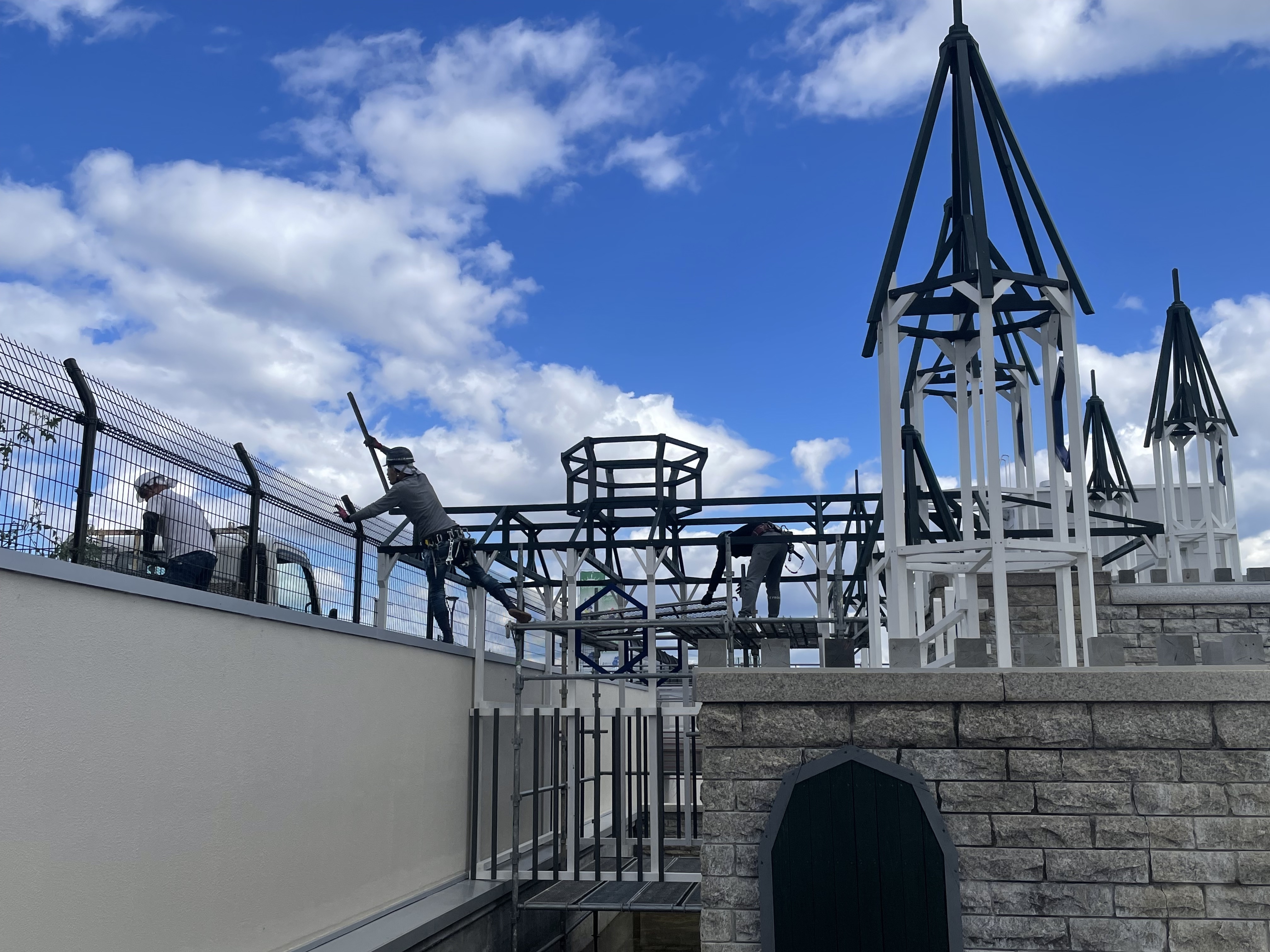 9月に7基の尖塔の組み上げ、10月に入り、塔後方の建屋を築き上げ、この度、ようやく完成の運びとなりました。