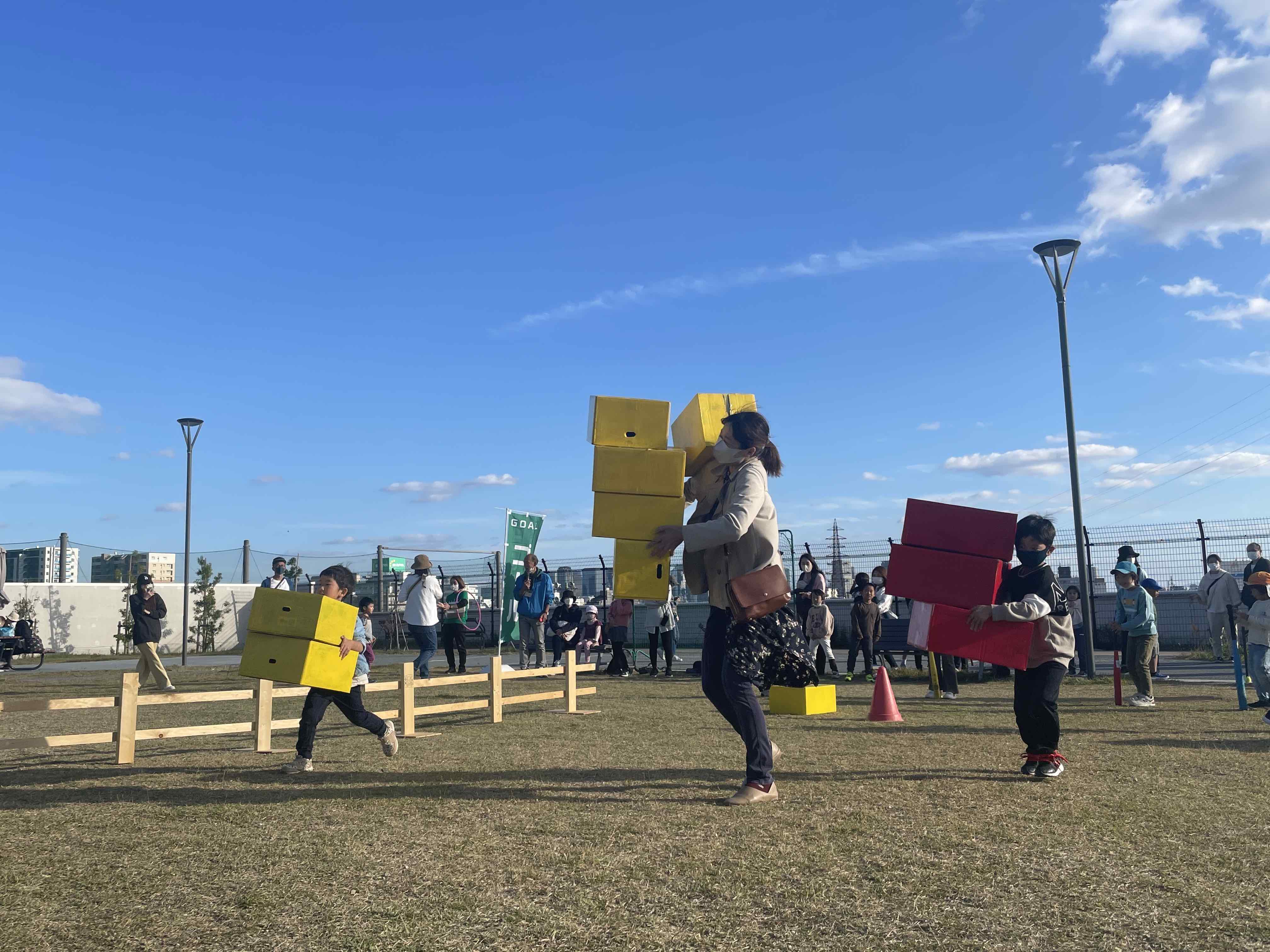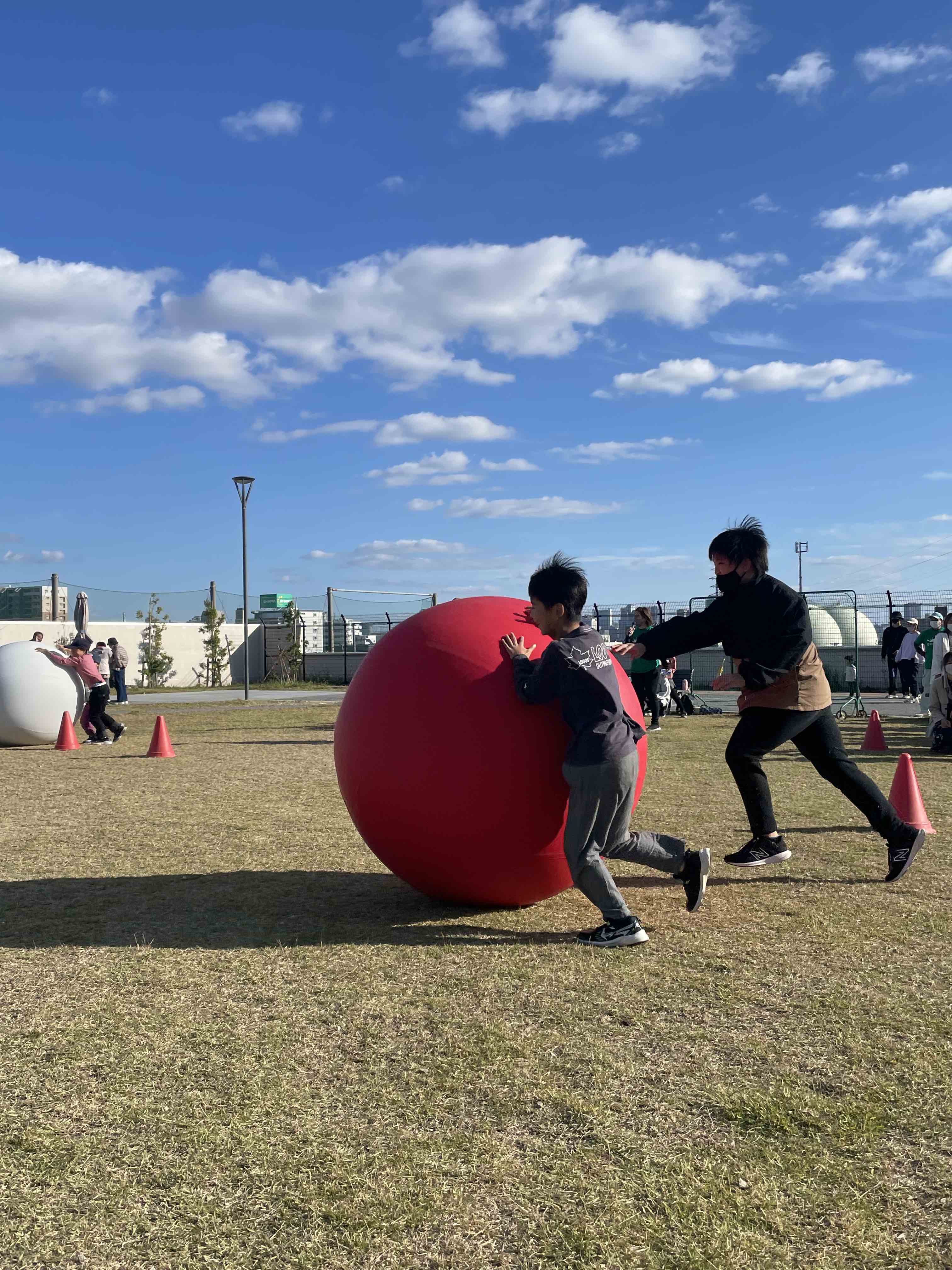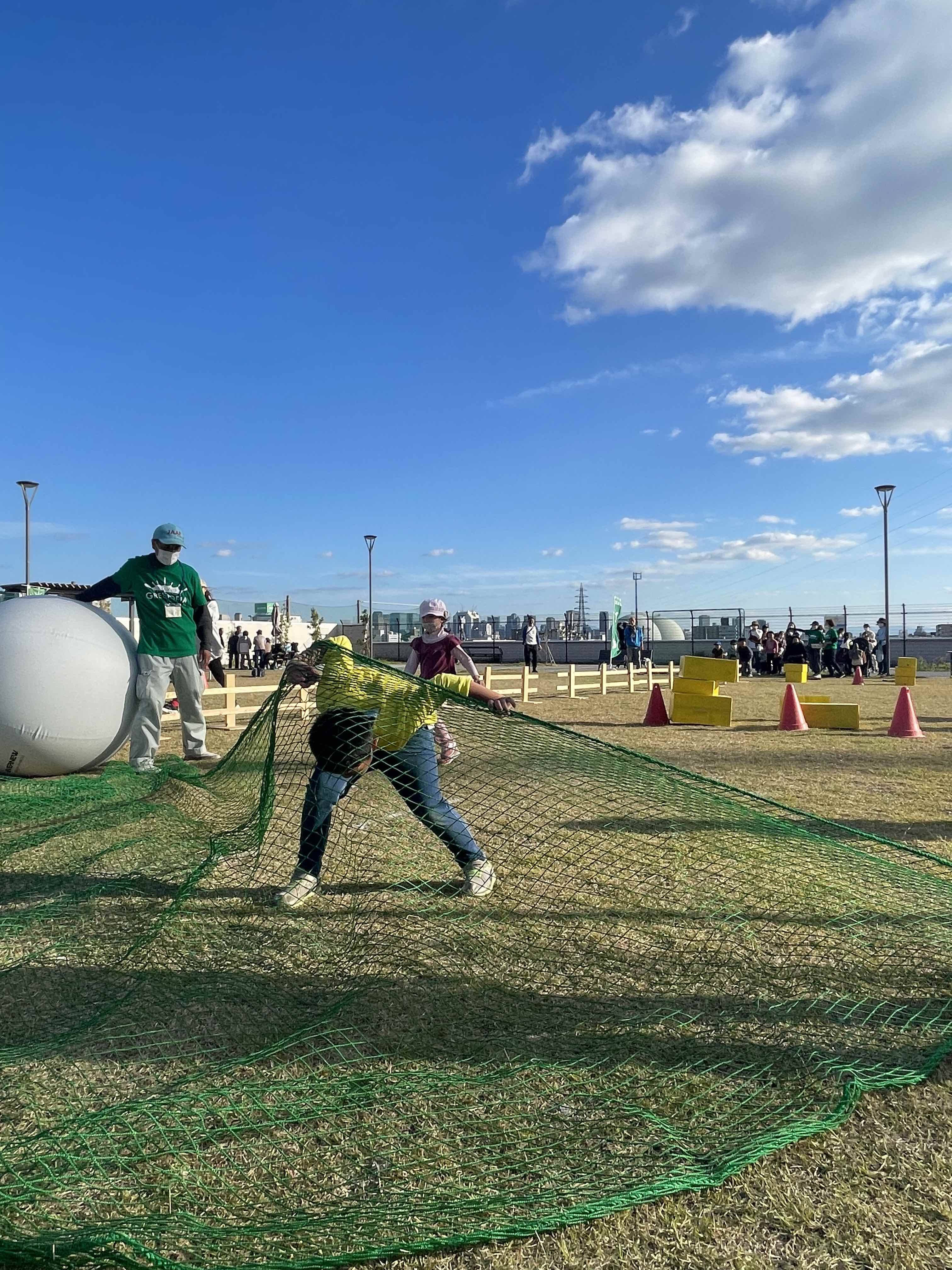 ミニ運動会以外では、サッカー教室やヨガの体験教室、車椅子テニスの体験会、あそび道具の貸し出しなど、グリスポを超満喫できる1日になりました。