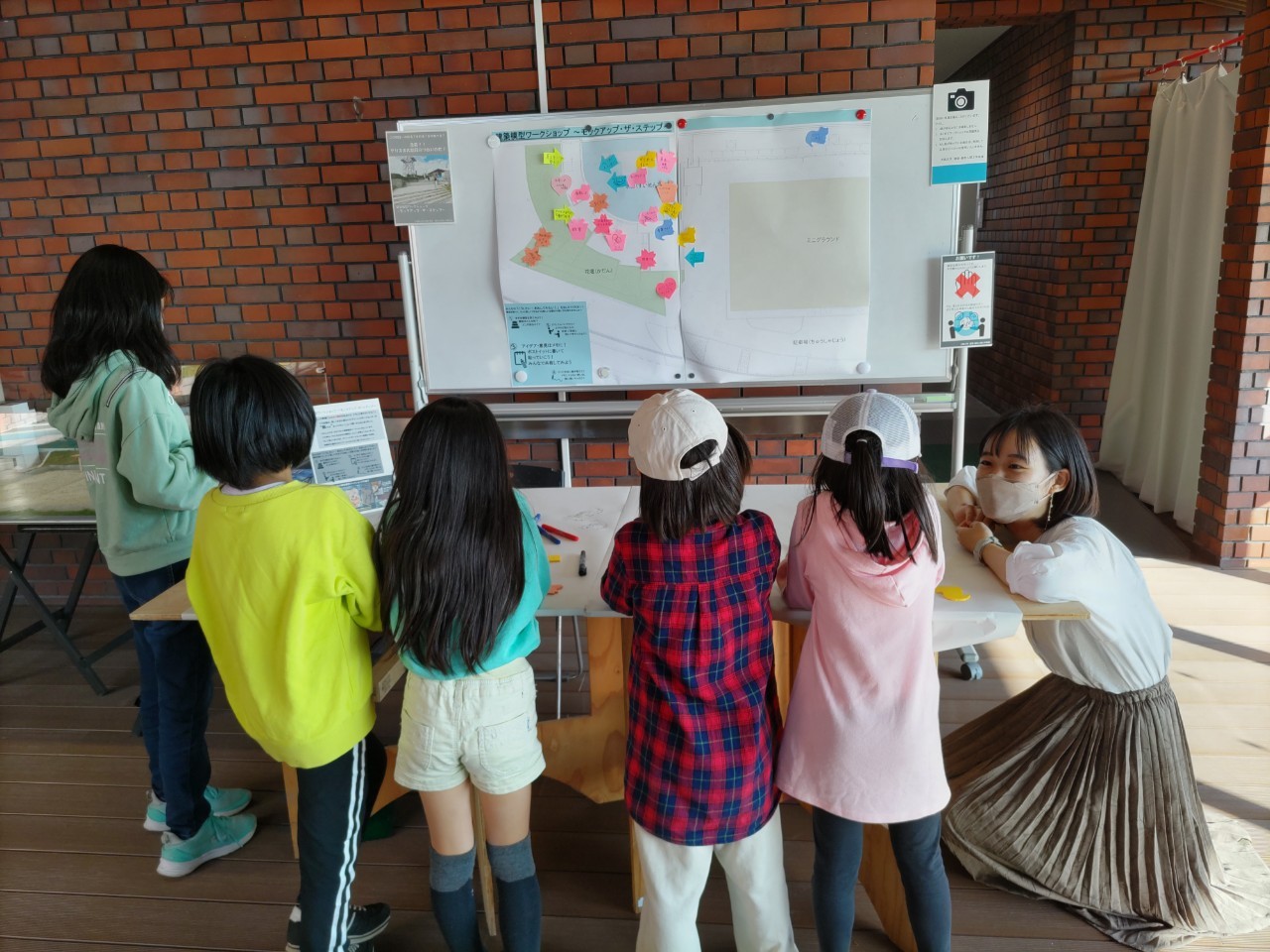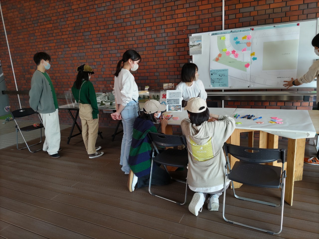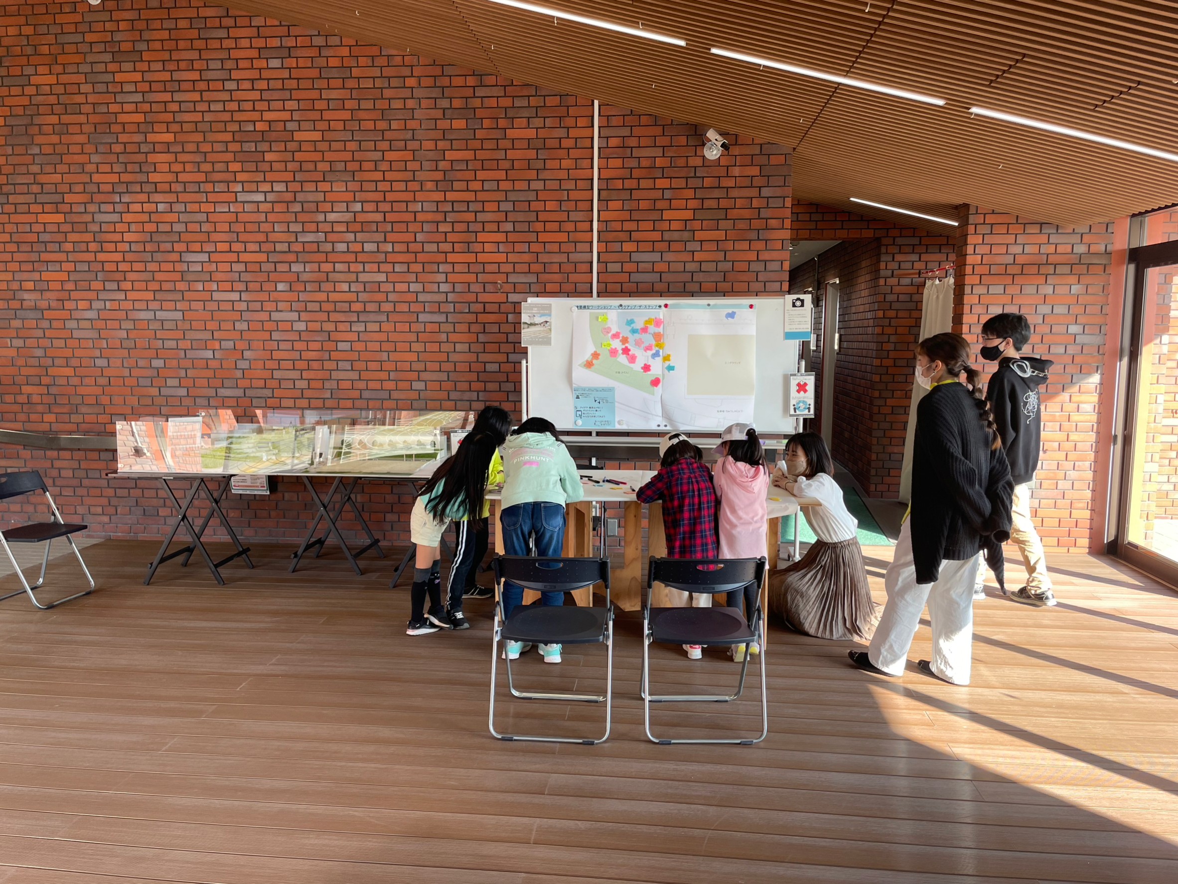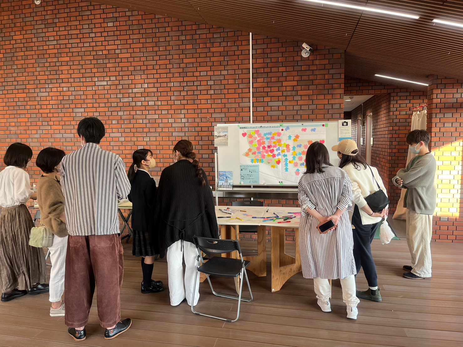 研究室の学生が参加者と語らい、ぼんやり沸いたアイディアを言葉で拾う。当日も幅広い年齢層の参加者と学生が、模型を前にして場所のイメージを共有し、参加者から湧くアイディアとビジョンに寄り添いながら進行していました。 そして、プログラムの終了時間には、アイディアが書かれた付箋が、ホワイトボードに貼りきれないほどに。 この集まったアイディアは研究室に持ち帰られてまとめられます。 また、施設近隣の地区でのワークショップを重ね、施設利用者のアイディアと地域の方々のアイディアが交わり、未来のグリスポの種(タネ)になります。 今後、一体どういうグリスポの玄関口が生まれ、花開くのか、是非この先を楽しみにしておいて下さい。