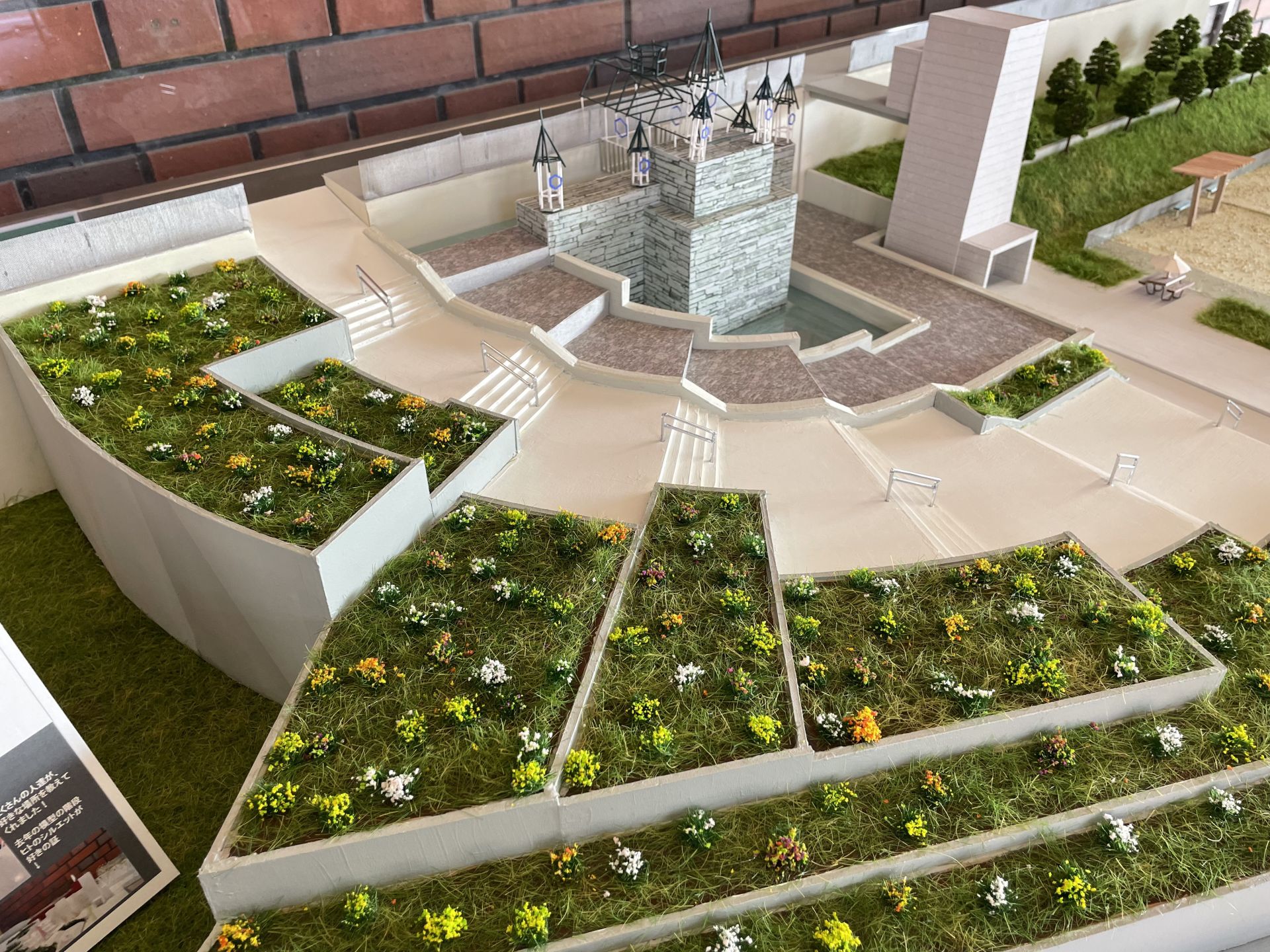 普段、階段を通り過ぎる際には見えていなかった空きスペースの形、広さが、模型を見下ろすことで一瞬で捉えられます。又、お城が建っている石段周辺は、今は立ち入り禁止のエリアでもあり(グリスポの初期、ここは滝施設でした。※池の水を上部まで汲み上げ、流し下ろす循環型のウォーターエリア)、デッドスペース(※使えない空きスペース)になっています。 そして、そういう場所を含めた、南階段周辺の活かし方のアイディアを募り、実現可能なことを試みようとしています。施設の顔として、お城とその周辺をより楽しく、魅力溢れる空間にすること。その第一歩がこのワークショップです。