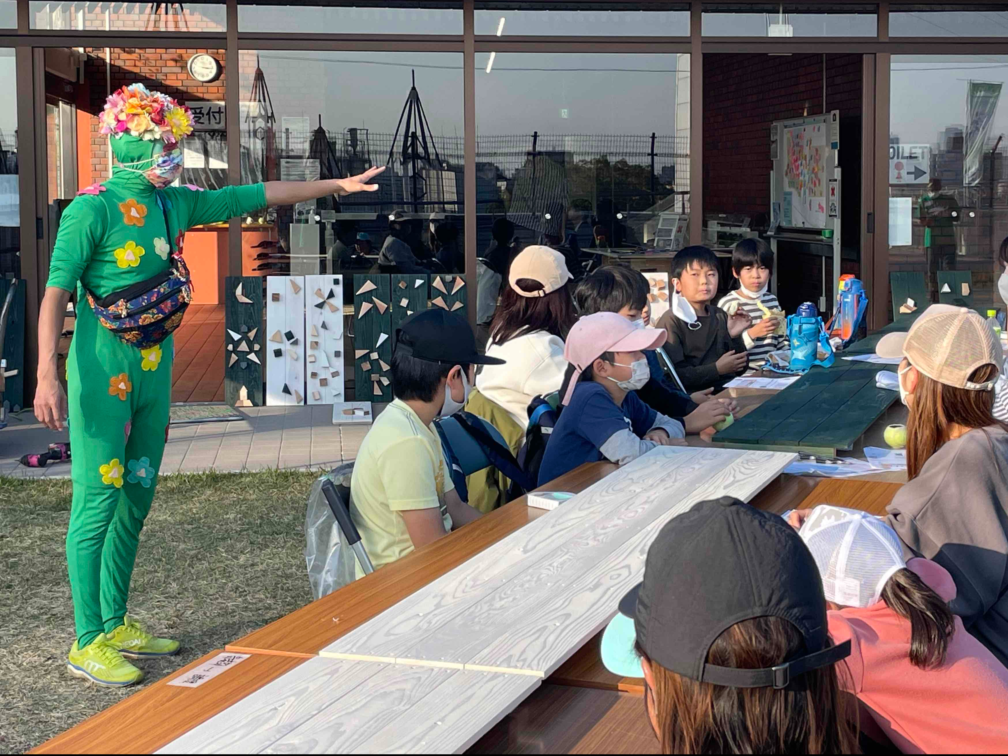 そして、プログラムは2部に分けられ、まずは「イロドリ砦(とりで)の飾り壁造り」からスタート!このイロドリ砦は施設エレベーター1階横、お城の外縁に建てられる、来場者をまず最初に迎える、家でいうと表札が付けられる柱のようなものです。