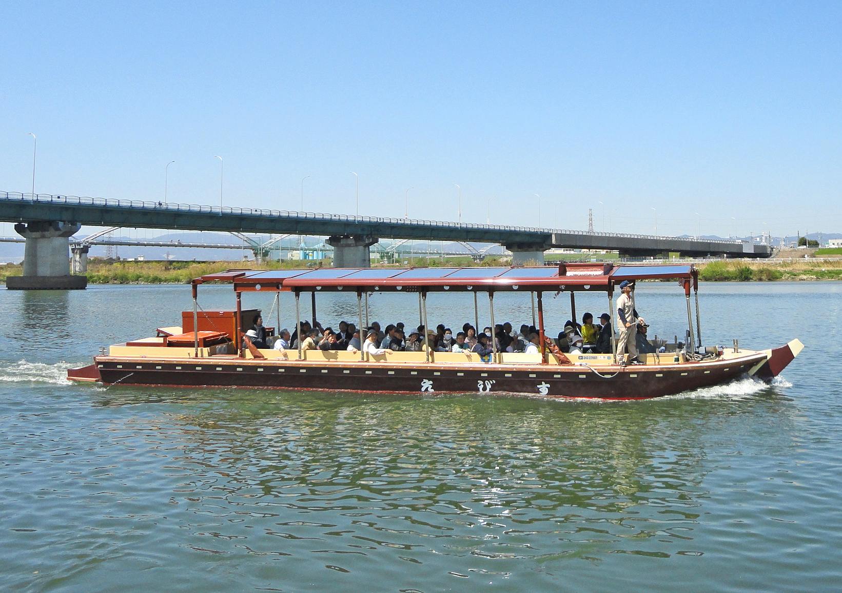 豊中はかつて神崎川には洲到止の浜(大島町)、猪名川は庄本の浜(庄本町)といった船着き場が京都や大阪へ向かう船でにぎわい、渡し舟は「三国の渡し」や「目いぼの渡し」(豊南町東)と、大阪から能勢方面へと行きかう人々や能勢方面の特産品を運び、豊中は重要な港町でもありました。そして、今は神崎川から見るとグリスポ(グリーンスポーツセンター)が一つのシンボルとして新しい水辺の風景を飾っています。また、温泉施設など神崎川の風景を楽しむ場所も生まれています。 この新しい豊中を水都大阪のクルーズ船(えびす号)に乗って一緒に楽しみませんか。