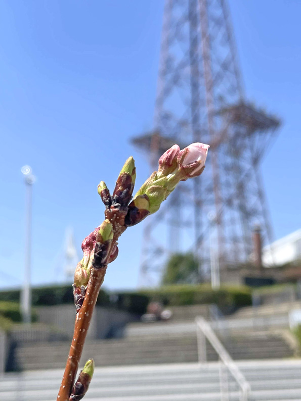 現在、桜前線は日本列島を北上中ですが、グリスポの桜は2種類あり、ソメイヨシノと枝垂れ桜(どちらもまだ小さいです)。リニューアル時に施設南側へ植えられたソメイヨシノもまだまだ幹が細いのですが、4月1日時点でようやく蕾が膨らんできました。市街地ではすでに開花が始まっているのですが、グリスポの桜はどういう訳か一週間ほど遅れ気味、来週には満開になりそうです。また、施設内に花は多く植えられていないのですが、自然に群生する小さな春の花があちらこちらで見ることが出来ます。