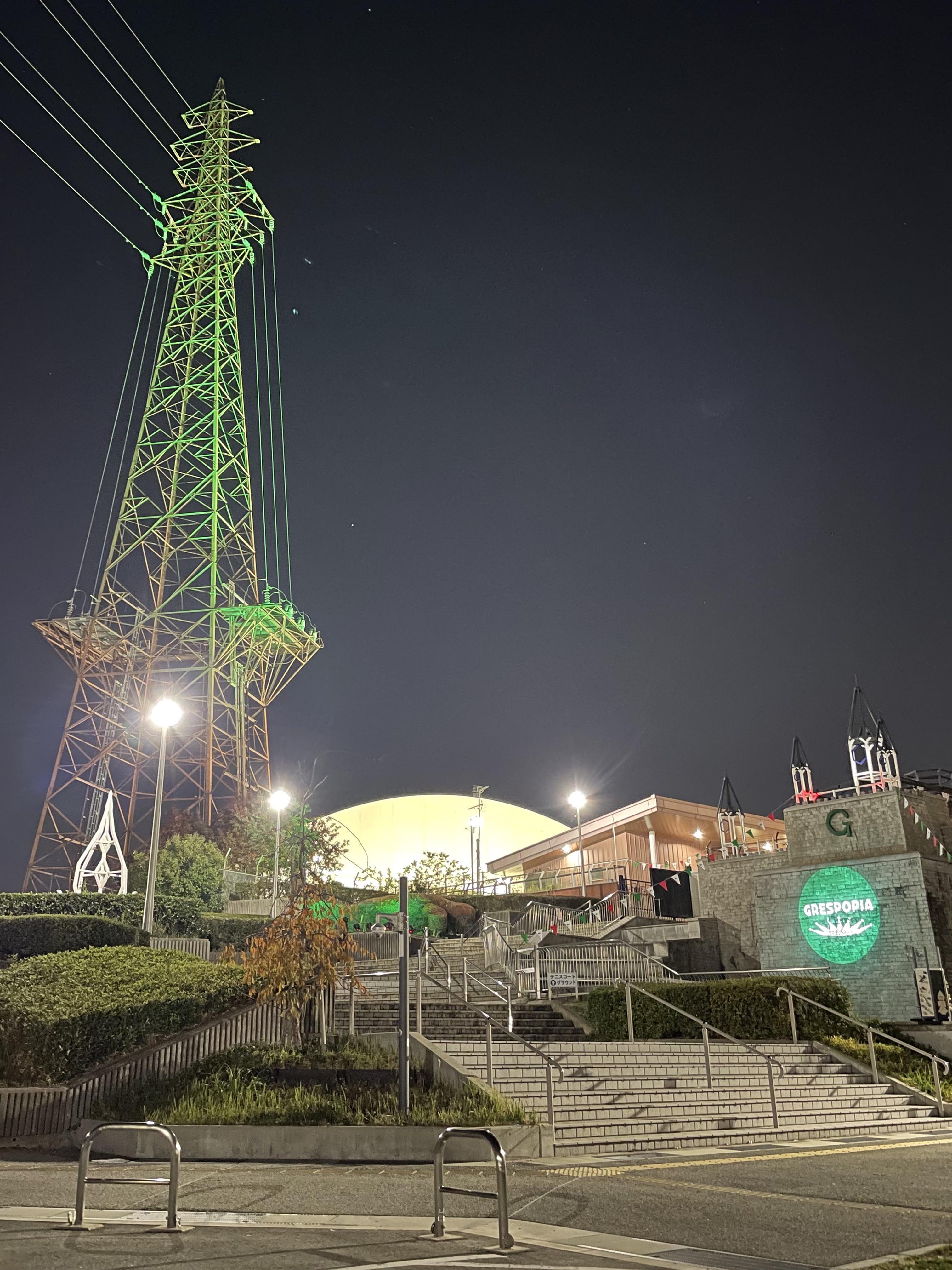 また、本日11月22日より記念ライトアップ「未来への灯火〜2030」が始まっています。グリスポの「水、緑、生命、未来」をイメージしたライトアップ。必見です!
