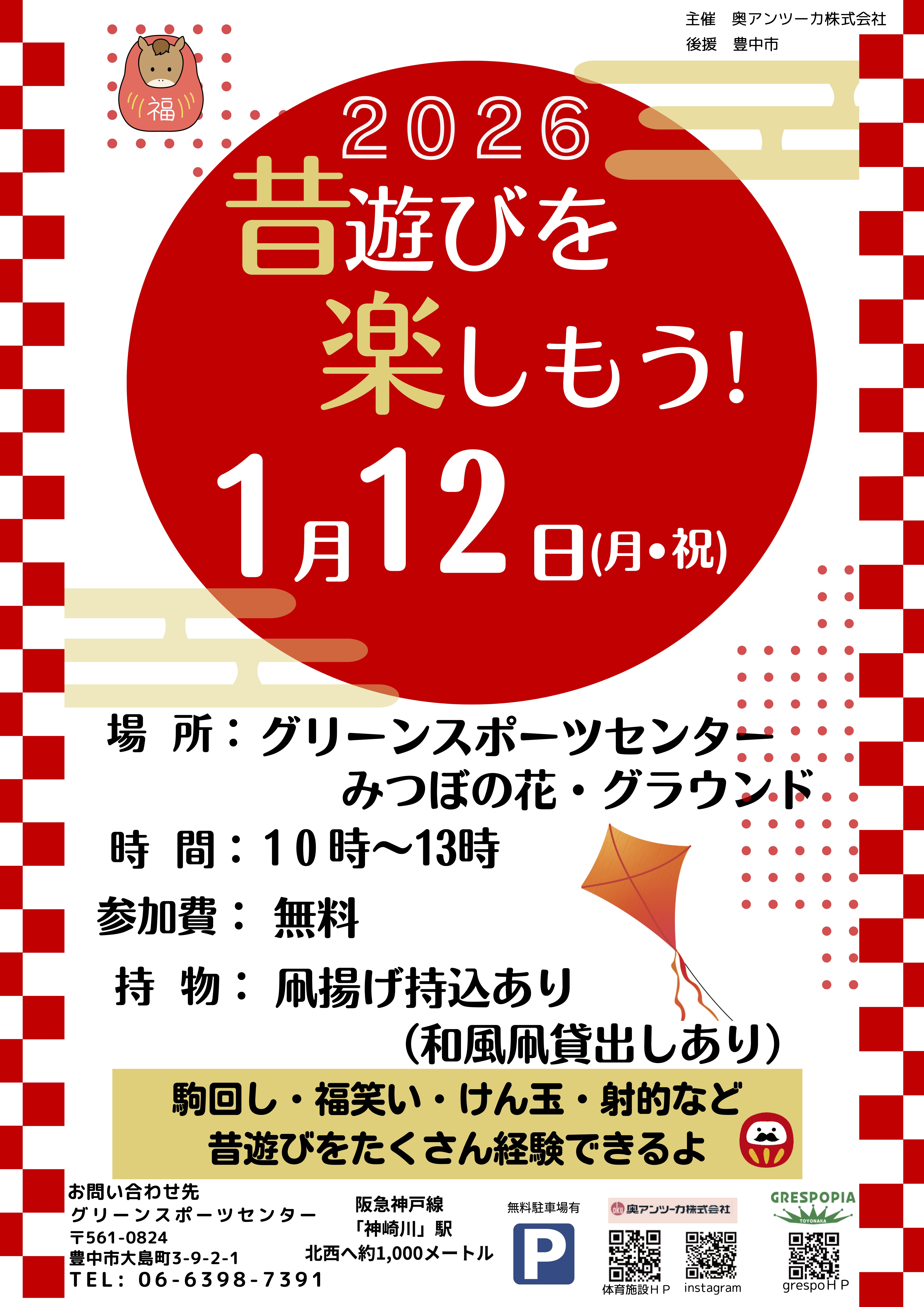 新たな年の始まりに、大空に願いを届けるグリスポの凧揚げを、是非楽しんでみて下さい!!