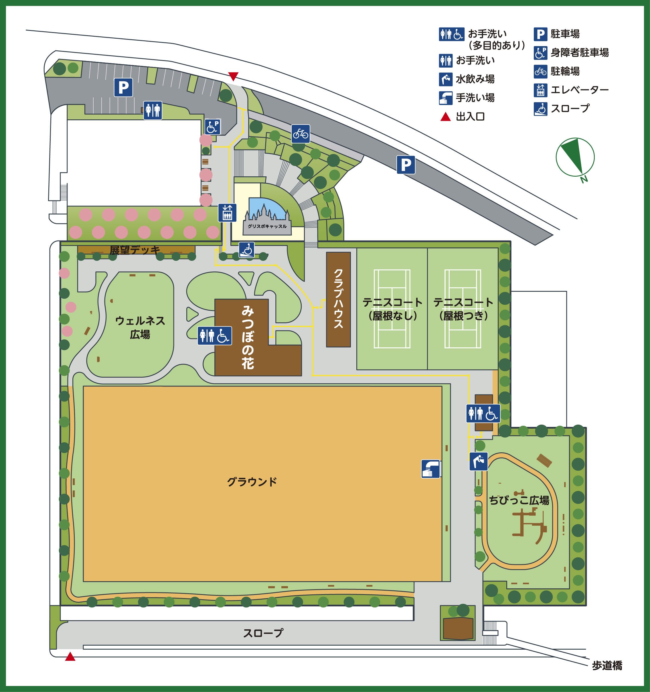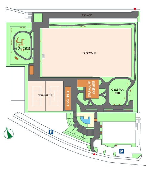 芝生広場には健康体操器具もあり、自分のペースで自由に体を動かしたり、デイキャンプを楽しんだりと、それぞれの時間を過ごしてもらえます。
